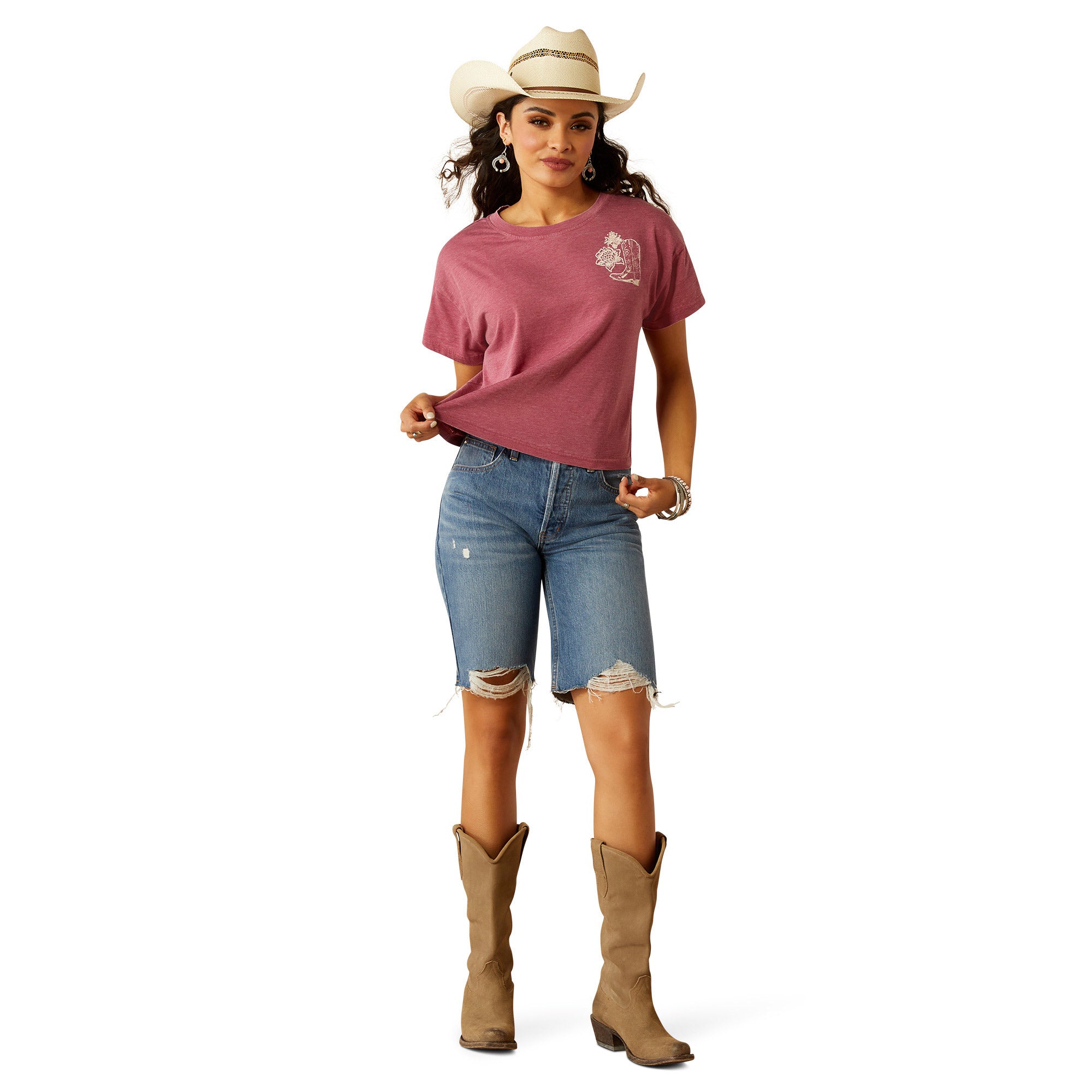 Super soft with a boxy fit. this tee is cropped at just the right length for high-waisted denim. The Western graphic lets you show your adventurous spirit.