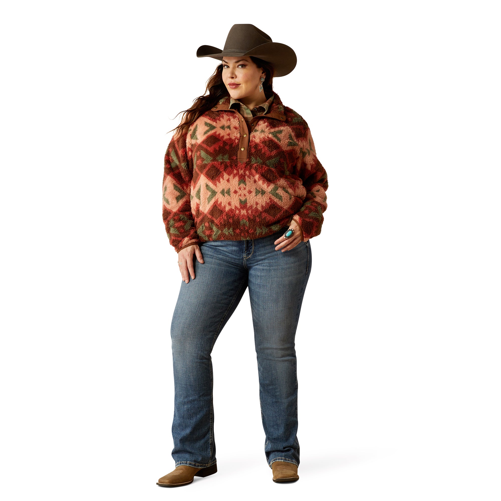 So soft. so plush you won’t want to take it off. With warm. high-pile fleece and a colorful print. this slightly cropped pullover is as happy lounging around at home as it is grabbing drinks with friends.