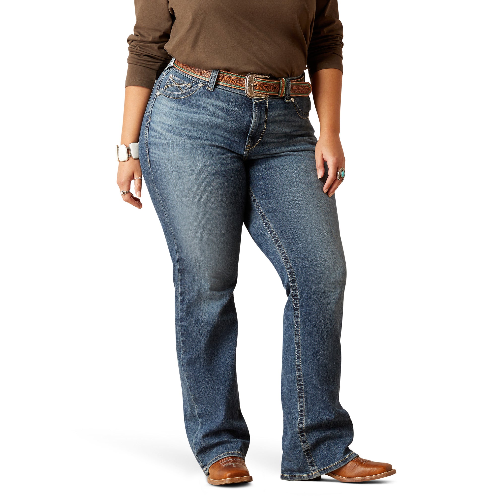 Let your pockets do the talking. We elevated your favorite riding jean with bold navy stitching that will turn heads in and out of the saddle. It’s an instant go-to for days when you want to stand out just a little more.