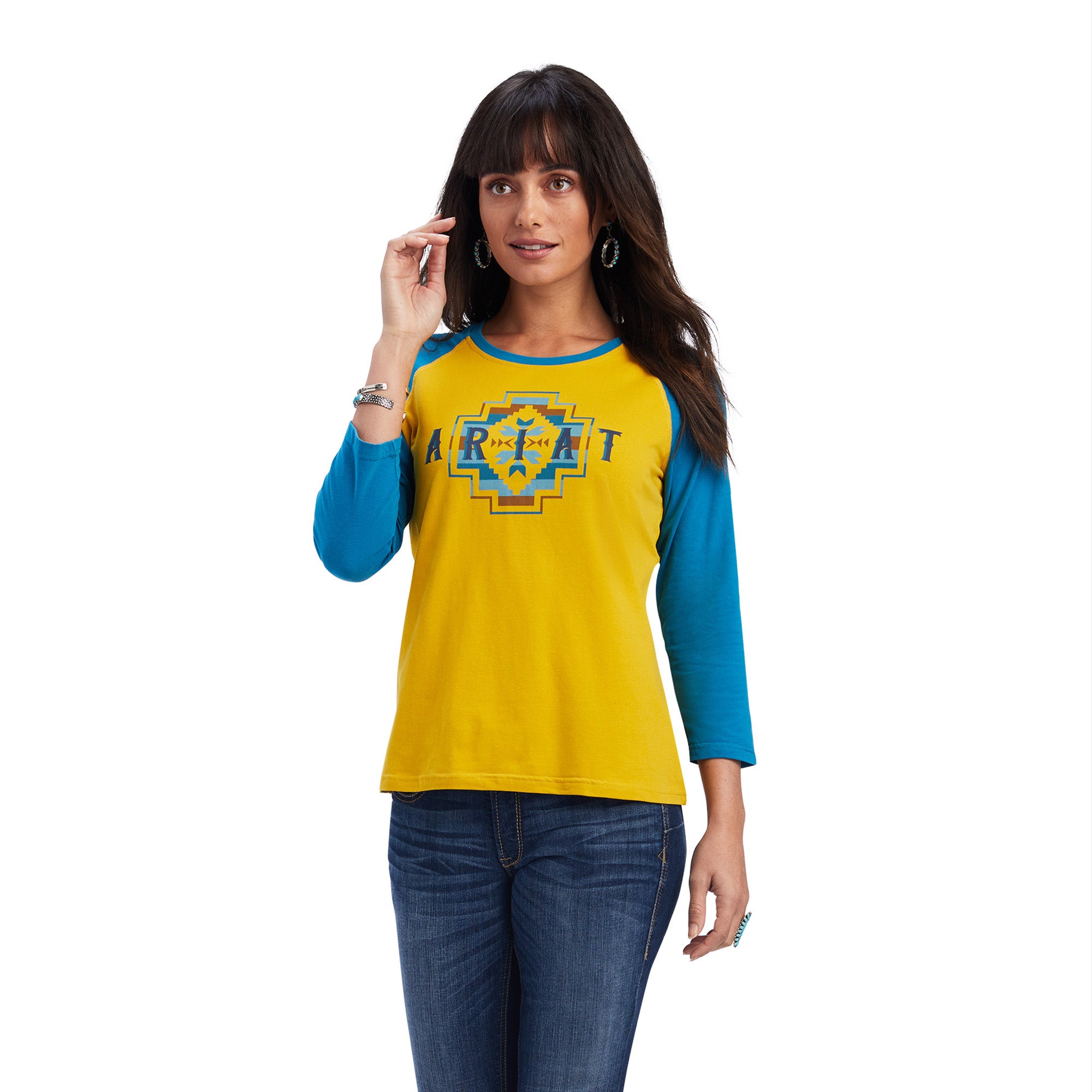 A Southwest-inspired graphic brings the fun to this classic baseball tee. Paired with soft jersey fabric. it’s a go-to for everything from running errands to hanging out at the farm.