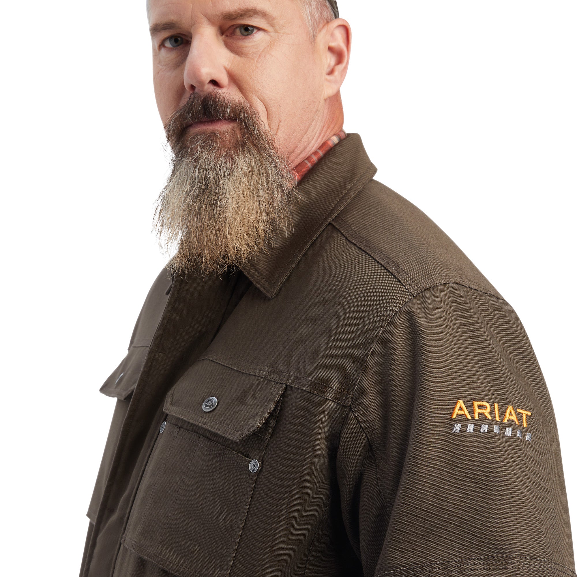 Chest and hand pockets with snap closures