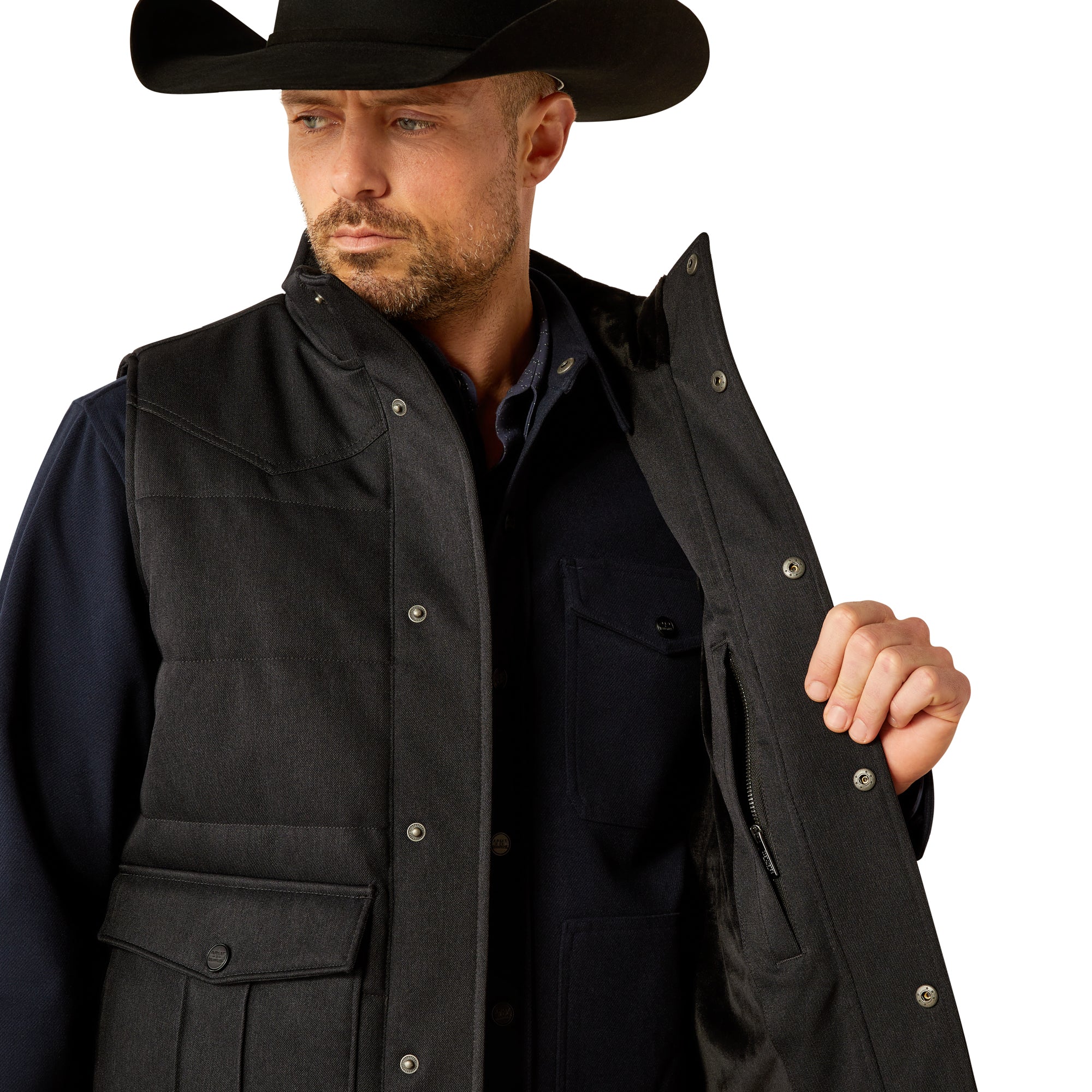We teamed up with 26x World Champion Trevor Brazile on an elevated collection inspired by his post-competition looks. Featuring a soft hand feel and luxurious details. this insulated vest keeps you warm without sacrificing style.