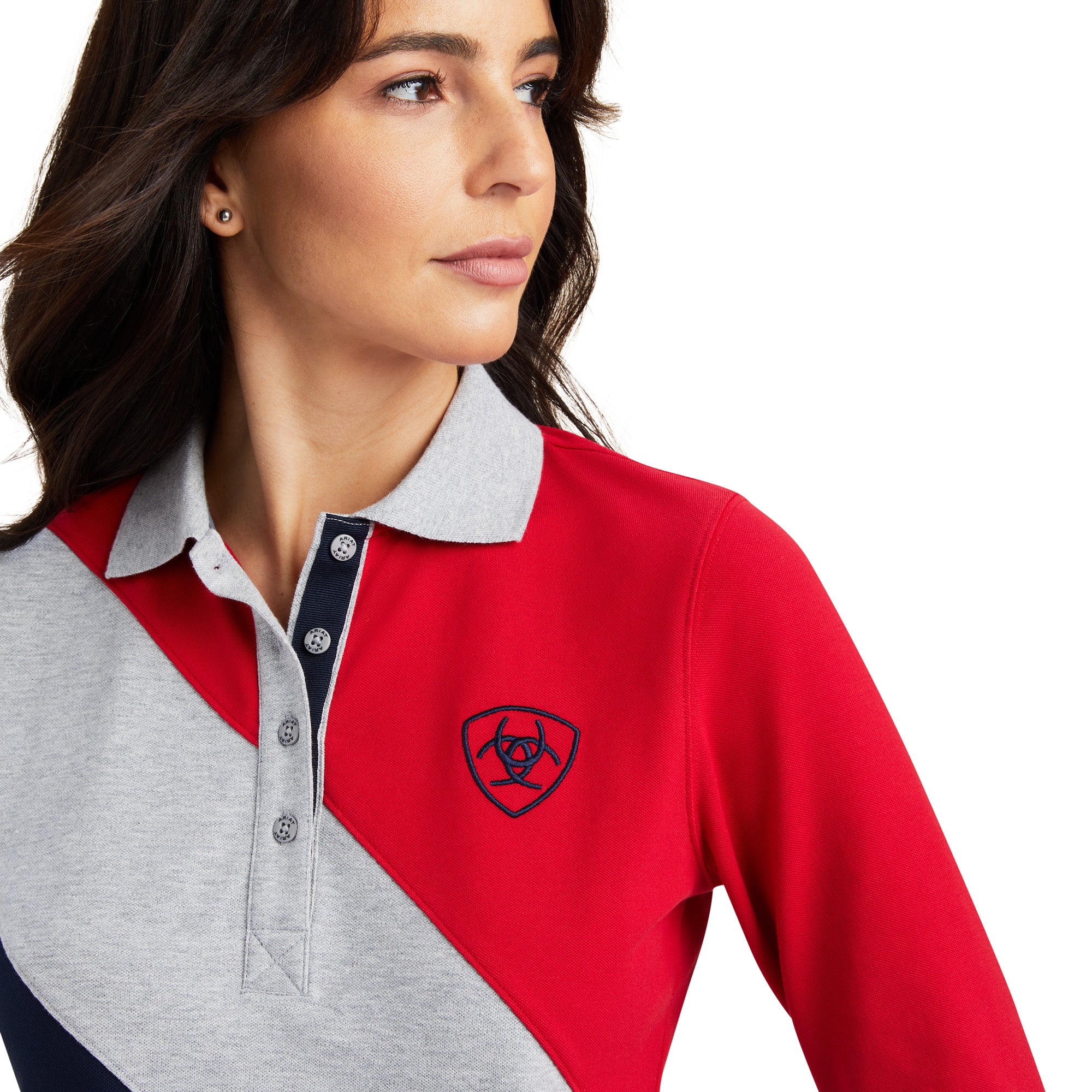 Designed for comfort in and out of the saddle. the Taryn Polo is crafted with breathable fabric that quickly wicks sweat to keep you dry. Its classic polo cut and bold color blocking make this long-sleeved version a cool weather staple.