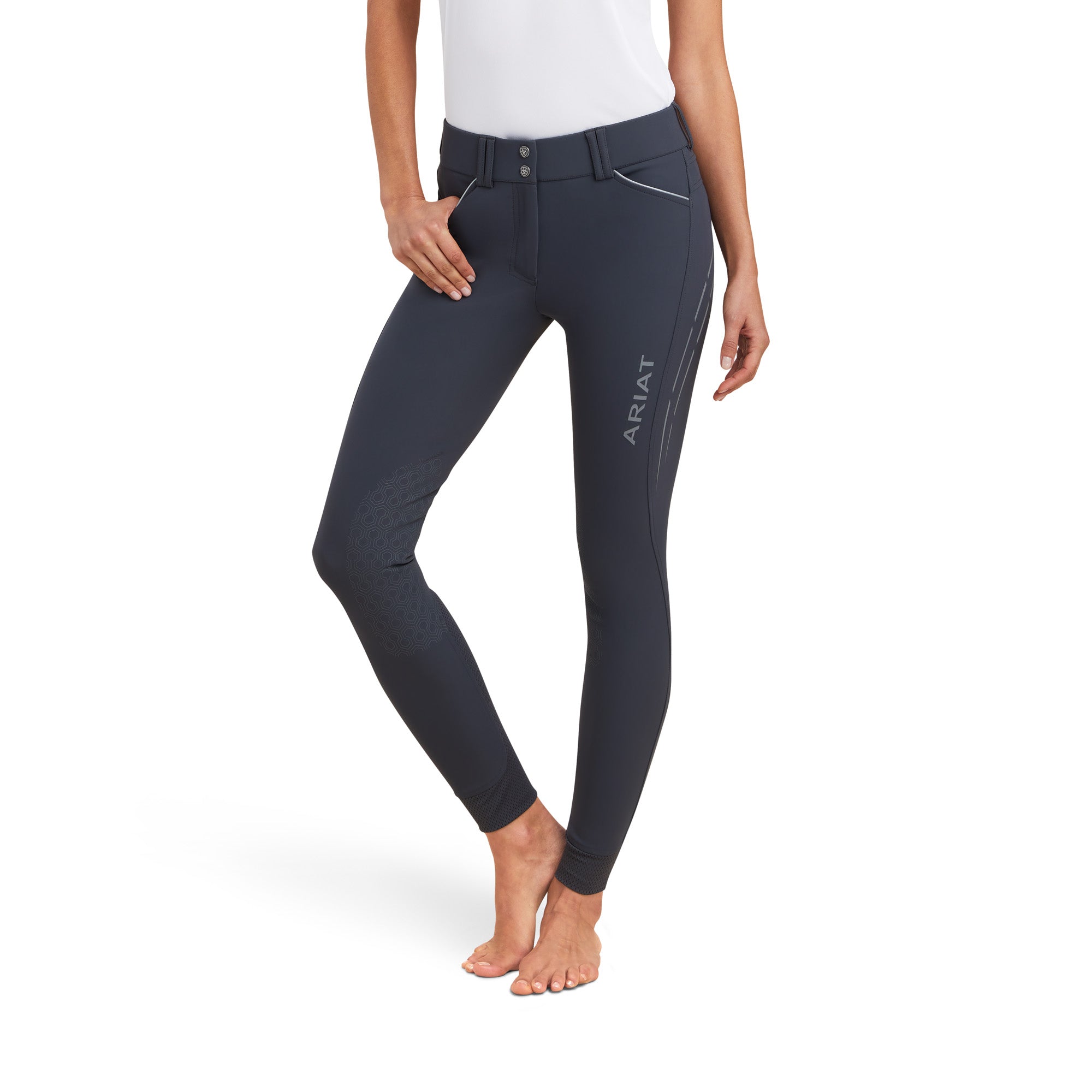 - Ariat? Hex Silicone Grip knee patch for optimal grip in the saddle
